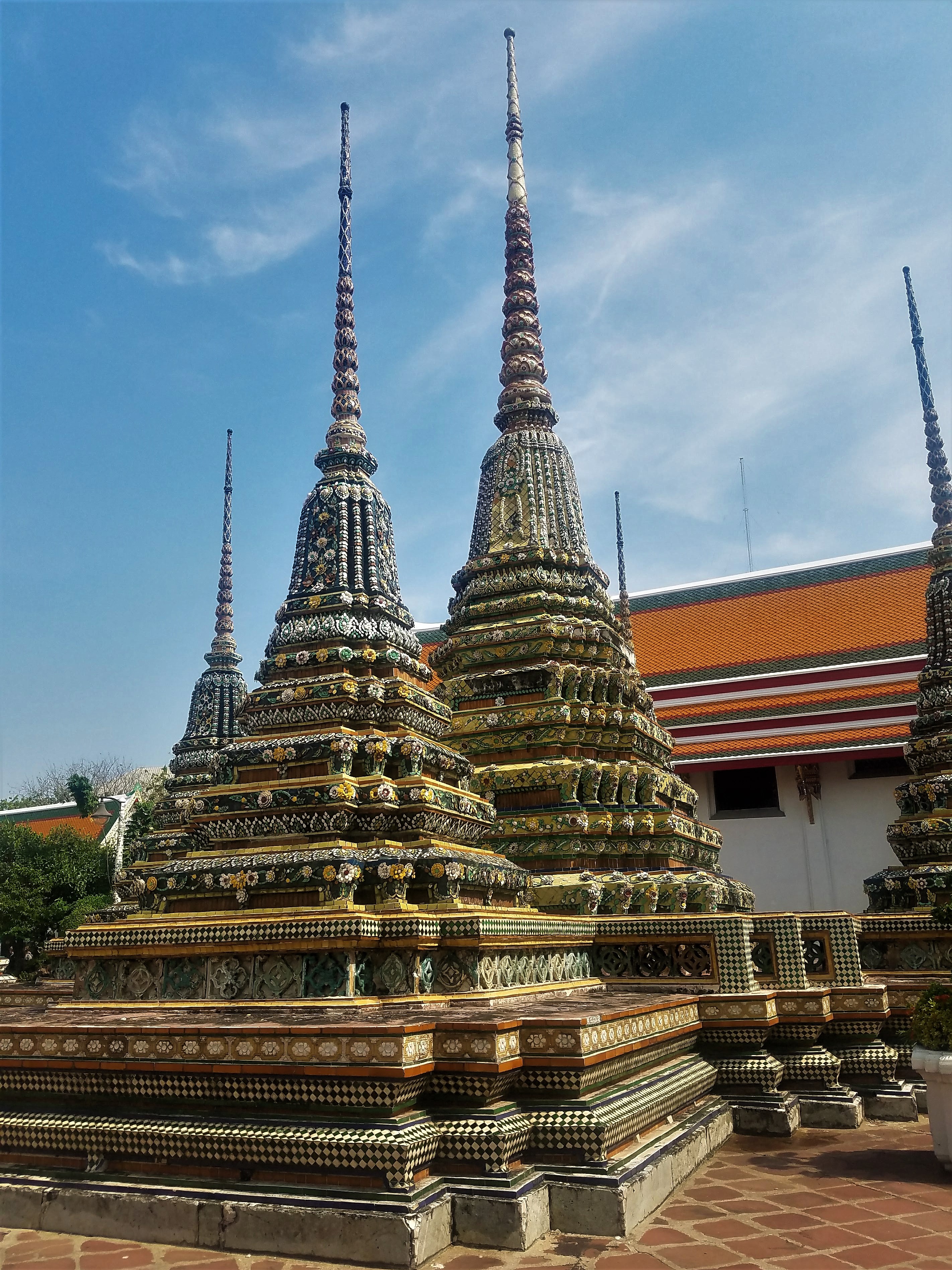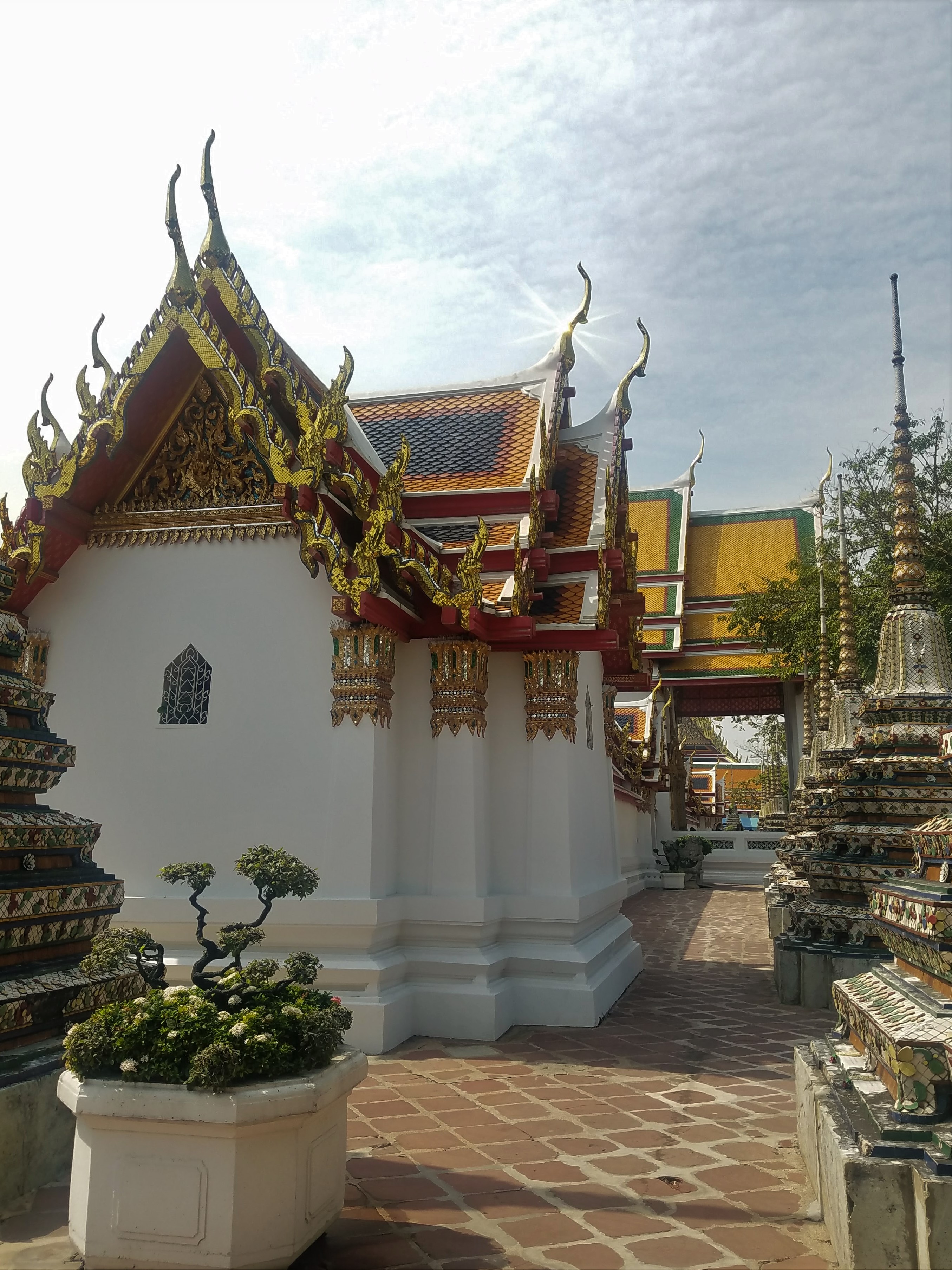 Waking at 9 am, refreshed, I showered and headed off in search of The Grand Palace. Wandering the crowded streets of Bangkok, was a bit overwhelming, but eventually I found the Wat Pho temple complex, and spent the next few hours lost in a maze of gardens, and buildings.