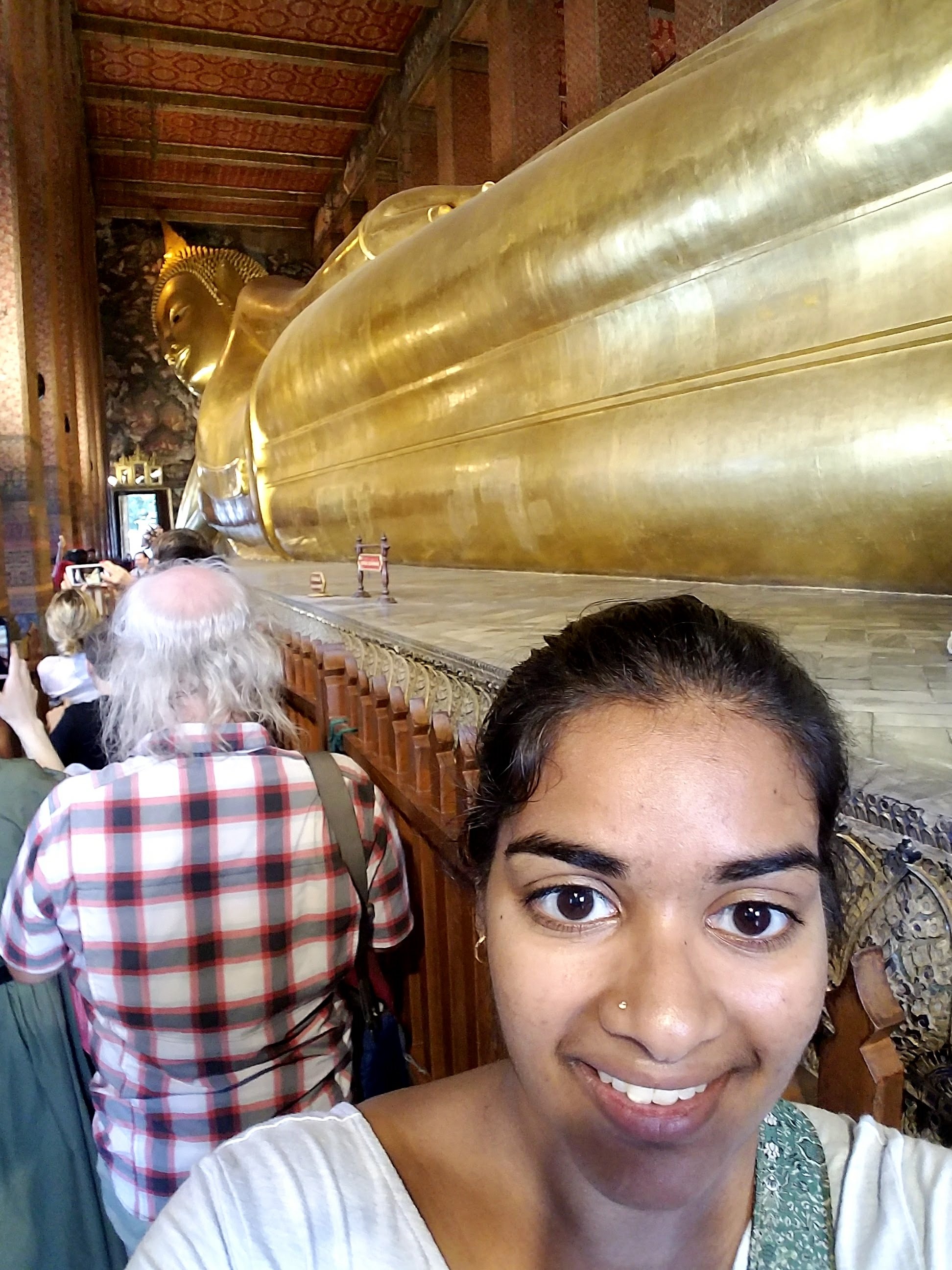 Admiring all of the intricate mosaics, statues and impressive golden Buddha statues. The main draw was the MASSIVE reclining Buddha statue.