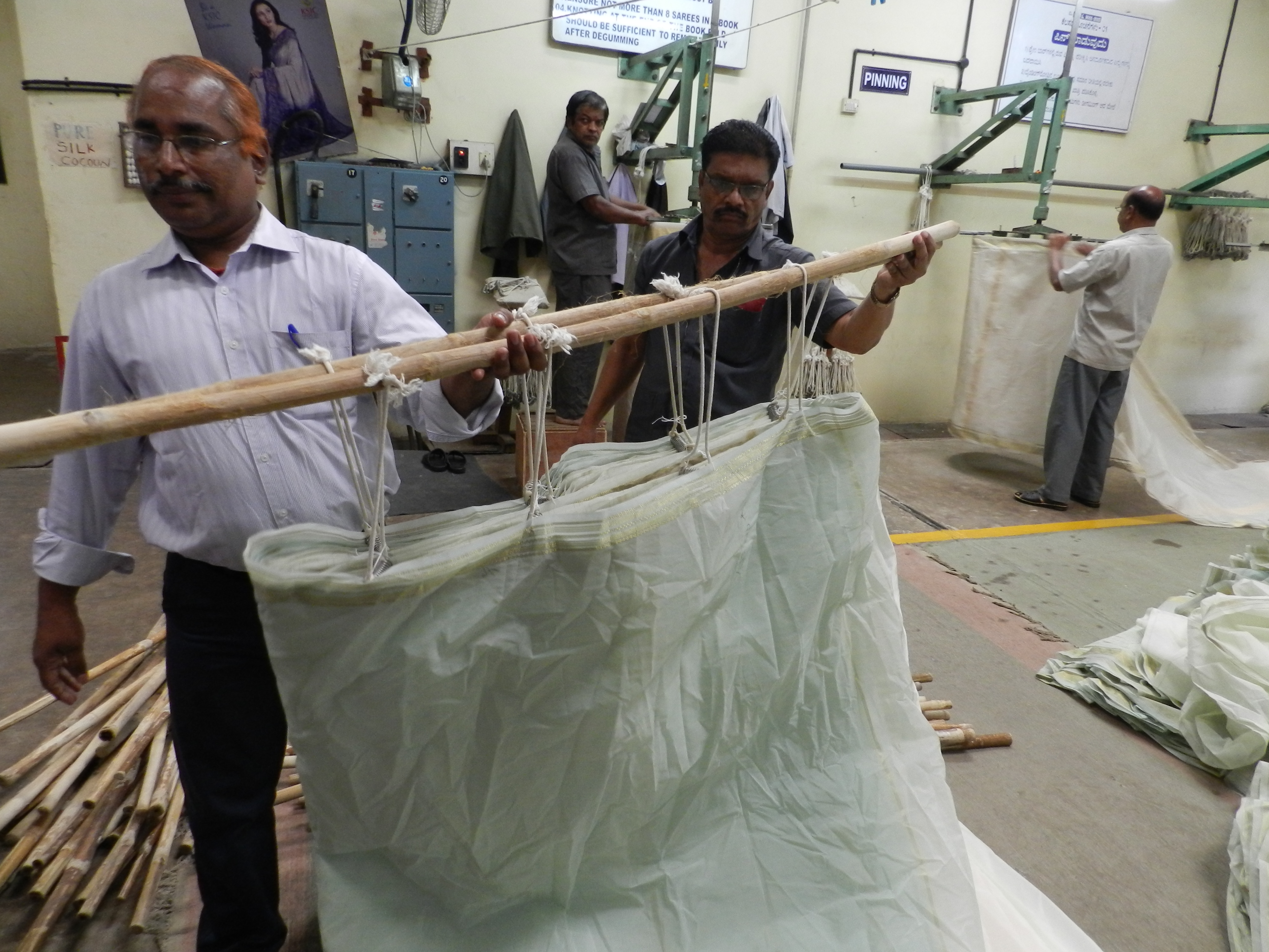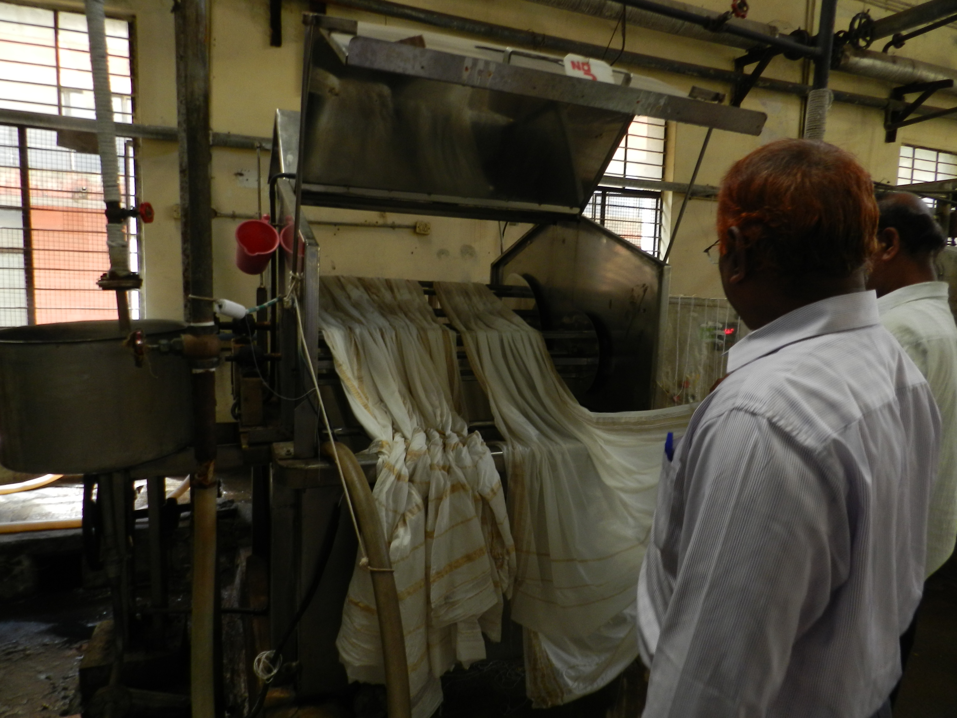 I also had the opportunity to tour the Mysore Silk Factory, watching as a plain woven sarees gets cut and dyed before being priced for sale. The most impressive part is watching the saree borders being dyed by hand. The process is slow and requires precision to ensure that only the correct area of the saree is exposed and ready for the contrast color. Each of these sarees ends up with a deep and vibrant color that is easily recognizable from any distance.