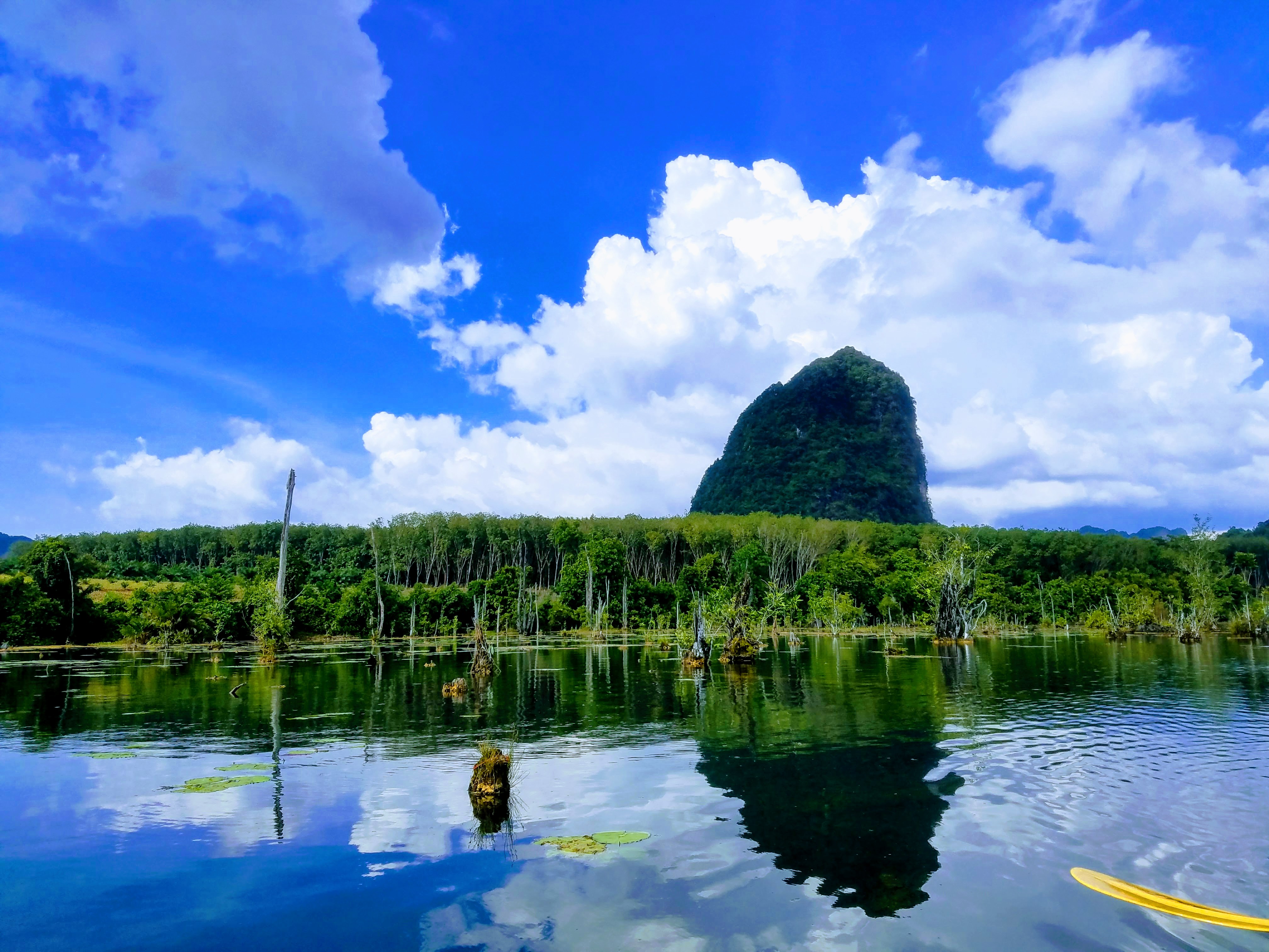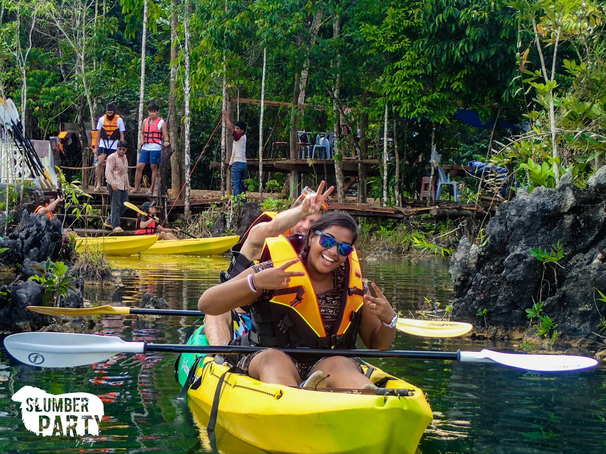 The first day was spent kayaking to a “secret” swimming spot, known only to locals and taking in the sunshine. The only downside was the trip was cut short by a rainstorm. Still, I enjoyed the blue on blue and floating in the swimming hole. Looking up at the blue sky through the branches of the jungle.